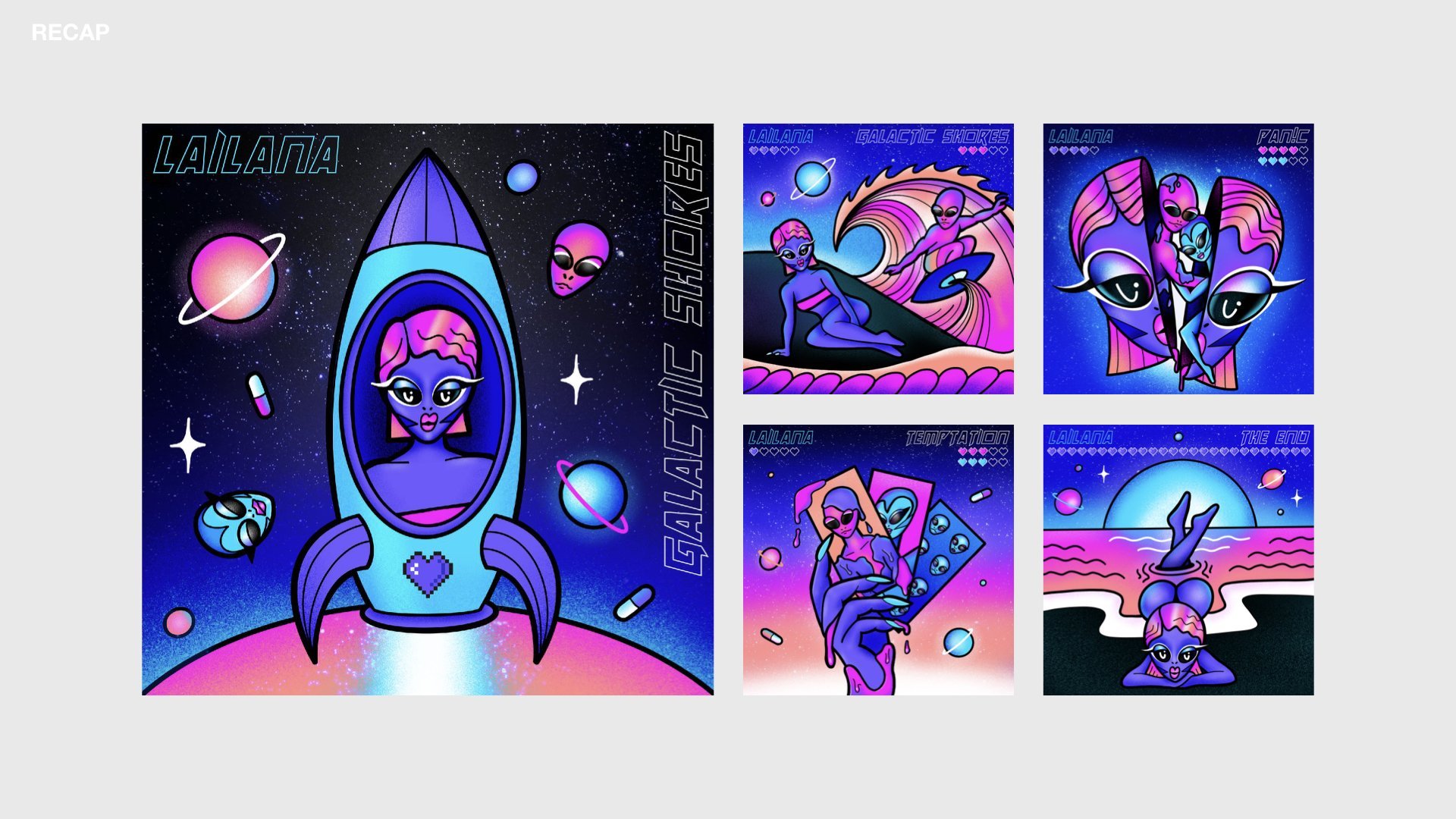 I took charge of the key visual components, designing both the EP and single covers. Additionally, I produced a series of compelling visuals and marketing materials inspired by these designs. This included dynamic digital illustrations for each cover, thoughtfully designed layouts, and captivating animations that enhanced our promotional efforts across all digital platforms. I also created vibrant graphics for the music video, an engaging AR lens for Instagram, eye-catching posters for the release party, and merchandise such as stickers and t-shirts, ensuring a cohesive and captivating presentation of LAILANA’s artistic vision.