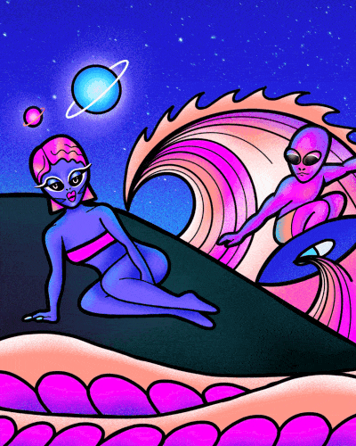 LAILANA is an independent artist from London, known for her captivating work as a singer and songwriter. She found my illustration page on Instagram and wanted to collaborate on the cover for her debut EP, Galactic Shores. Although the EP was already completed, she sought a visual artist to bring her concept to life. The EP tells a mesmerizing love story involving a third party, depicted through imaginative alien illustrations. What began as a request for a single cover design evolved into a partnership where we created the entire Galactic Shores universe together, making me a key part of the EP’s rollout.
